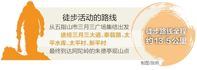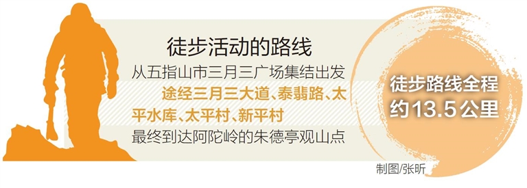 据了解,徒步活动的路线是从五指山市三月三广场集结出发,途经三月三大道、泰翡路、太平水库、太平村、新平村,最终到达阿陀岭的朱德亭观山点,徒步路线全程约13.5公里。本次徒步活动不计成绩,参与者在规定时间内走完全程即完成任务,即可获得参与抽奖活动的资格。报名参加活动的徒步爱好者,除可以免费领取纪念T恤、抽绳背包和纪念奖牌外,还将有机会获得由五指山水云间文化旅游区提供的旅游大礼包,礼包分一等奖、二等奖、三等奖和优秀奖若干。其中,一等奖价值3888元(含烤全羊、住房券、玻璃漂流票和五指山红茶等)。