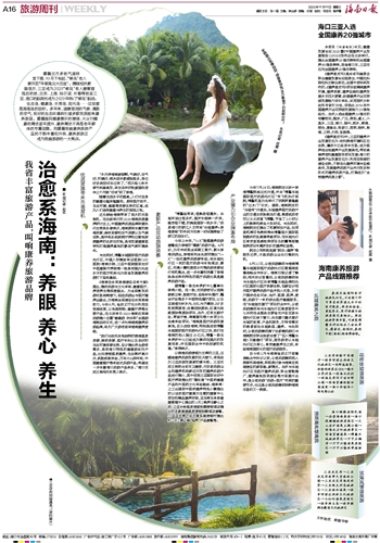 三亚湾体验中医理疗→保亭呀诺达雨林文化旅游区→泡野溪温泉、体验雨林养生SPA→陵水分界洲岛→琼海北仍村→琼海龙寿洋万亩田野公园→琼海官塘体验田园温泉→海口华谊冯小刚电影公社