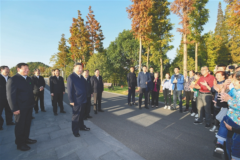 12日下午,习近平来到五山地区滨江片区,听取五山及沿江地区生态修复保护、实施长江水域禁捕退捕等情况介绍,对南通构建生态绿色廊道的做法表示肯定。随后,习近平沿江边步行察看滨江生态环境,详细了解当地推进长江下游岸线环境综合治理情况。习近平强调,生态环境投入不是无谓投入、无效投入,而是关系经济社会高质量发展、可持续发展的基础性、战略性投入。要坚决贯彻新发展理念,转变发展方式,优化发展思路,实现生态效益和经济社会效益相统一,走出一条生态优先、绿色发展的新路子,为长江经济带高质量发展、可持续发展提供有力支撑。