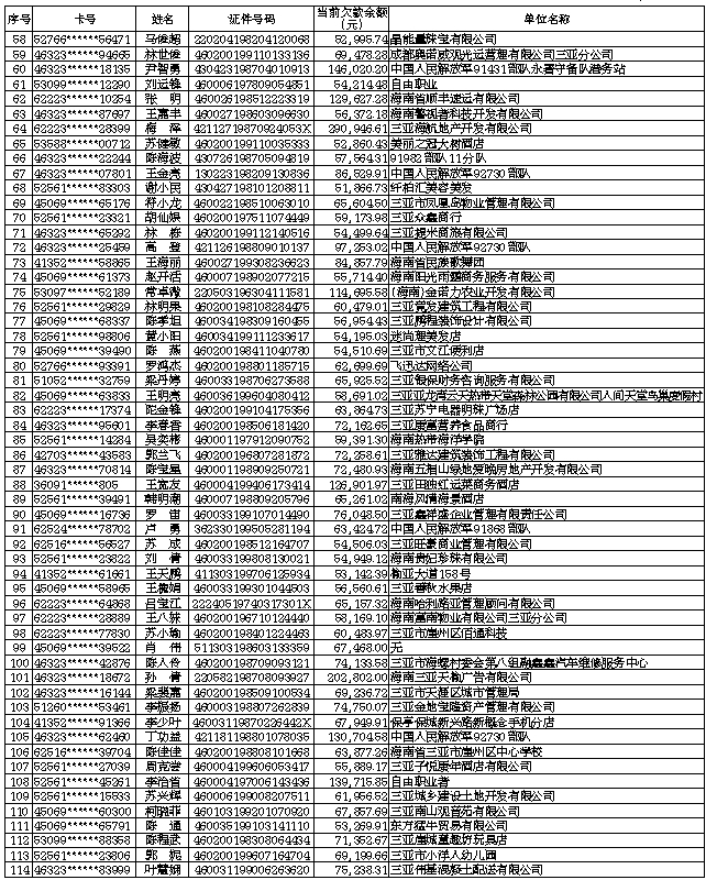 下列牡丹信用卡持卡人,经我行多次催收仍未按牡丹卡章程和合约约定偿还透支本息,本通告发布后,请于2020年12月31日前偿还全部透支本息及违约金,否则我行将通过法律途径予以解决。