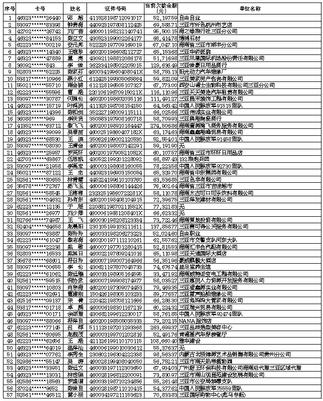 联系地址:三亚市解放路743号 客服电话:95588 88278968(截止2020年10月31日欠款) 中国工商银行三亚分行