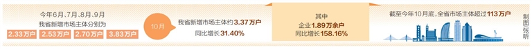 截至10月底,全省113万余户市场主体中,企业41.7万户,个体工商户71.49万户。