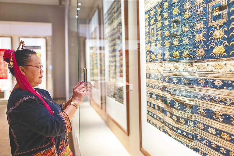 11月13日,“百卉千华 锦上添花——海南龙被艺术大展”在海南省博物馆开幕,从海南省博物馆、中国(海南)南海博物馆、海南省非遗中心等11家单位及民间藏家的藏品中遴选出的41件龙被珍品正式和观众见面。