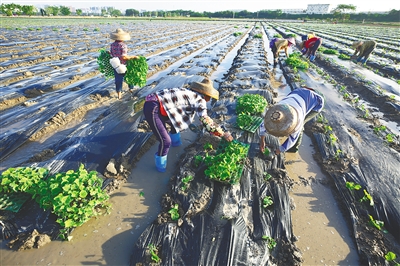 随着第22号台风“环高”对海南影响结束,三亚迎来晴好天气,当地农民加紧抢种冬季瓜菜,以确保好收成。据了解,今年三亚计划种植冬季瓜菜17万亩,力争产量突破47万吨。 本报记者 武威 特约记者 陈文武 图/文