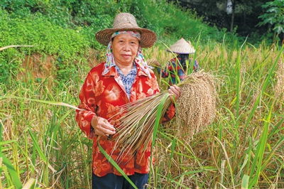“山兰旱稻看似易种,好管,但产量很低,稻谷亩产量仅为220斤左右,即便是栽种现今精心培育的高产品种,亩产量也仅能提升一两成左右。”海南省农业科学院粮食作物研究所作物栽培研究室主任陈健晓介绍,白沙山谷多,坡地多,稻田排水较为顺畅,非常契合种植山兰旱稻,再加上周边地区雨露、阳光充足,山兰稻稻穗较为饱满,收成可观。