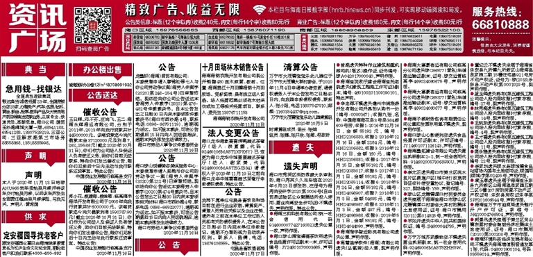 王日辉、邓不芬、庄尚飞、王二:海南永辉海运有限公司,分别于2011年、2013年向我行贷款共计44500000元。该笔贷款迄今尚欠借款本金37120000元及利息7,262,255.88元(截止2020年10月31日),你们作为公司法人及保证人负有偿还义务,因你们目前无法联系,特向你们发出催收公告,限你们见报后十日内主动与我行联系还贷事宜。特此公告!