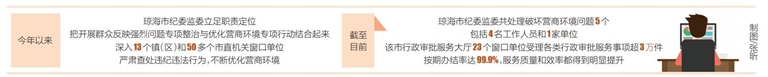 “我们坚持把优化营商环境作为日常监督、审查调查和市委巡察工作重点,加大监督检查力度,严肃查处贯彻市委决策部署不坚决不到位、只表态不落实,服务保障企业发展不作为、慢作为、乱作为等问题,以追责问责倒逼主体责任落实,推动窗口单位在优化营商环境上提质增效,助力海南自贸港建设。”琼海市纪委监委有关负责人表示。