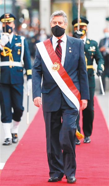 据新华社利马11月17日电(记者张国英)秘鲁国会主席弗朗西斯科·萨加斯蒂17日在国会宣誓就任新总统,接替15日宣布辞职的前总统梅里诺,任期至明年7月。