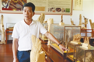刚回乡创业时,也有很多人不理解蔡亲信,再加之不懂销售,他起初4年加工的沉香产品卖不出去,堆得家里到处都是,家里人也和他闹了矛盾。