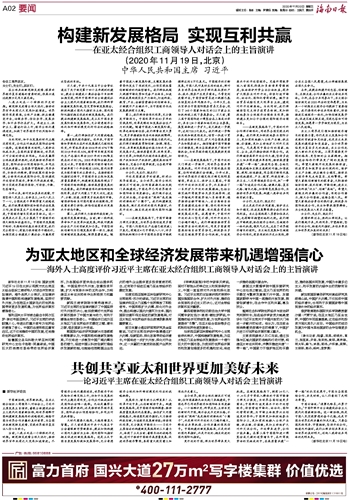 ~~~——海外人士高度评价习近平主席在亚太经合组织工商领导人对话会上的主旨演讲