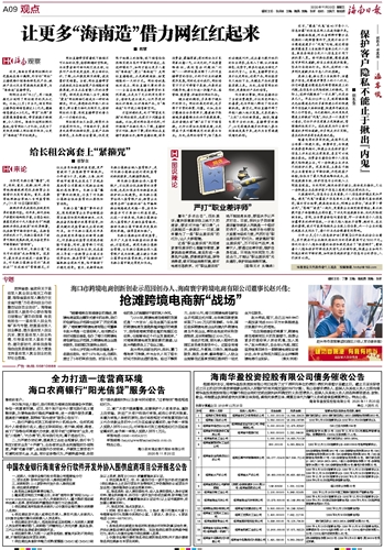 全力打造一流营商环境 海口农商银行“阳光信贷”服务公告