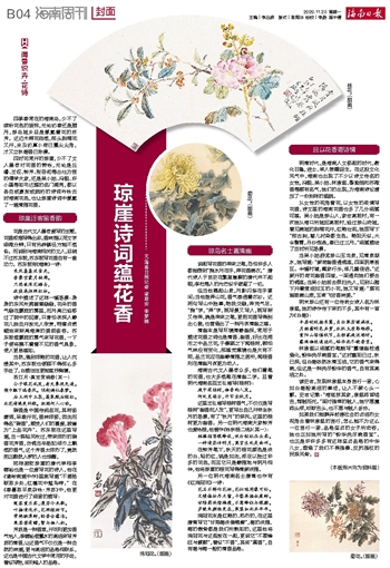 四时花常开的琼崖,少不了文人墨客对花香的赞咏,无论是丘濬、王佐、钟芳、张岳菘等出仕为官的儒学大家,还是吴小姑、冯银、许小蕴等知书达理的名门闺秀,都以各自或豪放或婉约的诗词吟咏古时海南花色,也让琼崖诗词中氤氲了一道清雅花香。