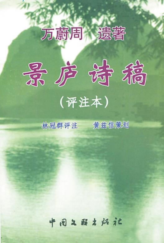 儋州自古就有“诗词之乡”的美誉。万民一用《景庐诗稿》很好地彰显了这一地域传统。万仲文也有《一空诗稿》《云庵诗稿》等著作传世。万氏兄弟的诗词创作是近现代儋州诗词史上的重要收获。