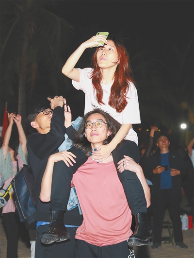“一直以来,人类对于月球形成的原因都感到好奇。”当天在海滩观测点服务的大学生志愿者林晓琳说,期待嫦娥五号携月壤归来。