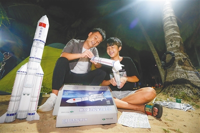 “2016年11月,长征五号火箭在文昌航天发射场成功首飞,那时候我刚好在文昌,看到人们热泪盈眶的场景,至今记忆犹新。”为看发射专程从江苏来到海南的王浩宇告诉海南日报记者,这一次,他带着孩子家人前来,“希望给孩子一个良好的航天教育启蒙。”