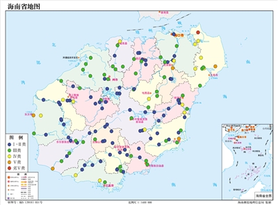 全省近岸海域水质总体为优。优良(一、二类)水质站位比例为95.6%,同比上升2.4个百分点;优良水质面积比例为99.9%,同比上升1.7个百分点。水质劣于二类的站位5个,其中万宁小海-1站位水质为三类,三亚榆林港、文昌木兰头、儋州洋浦港3个站位水质为四类,万宁小海-2站位水质为劣四类。主要污染指标为活性磷酸盐、化学需氧量、粪大肠菌群。