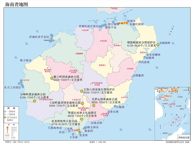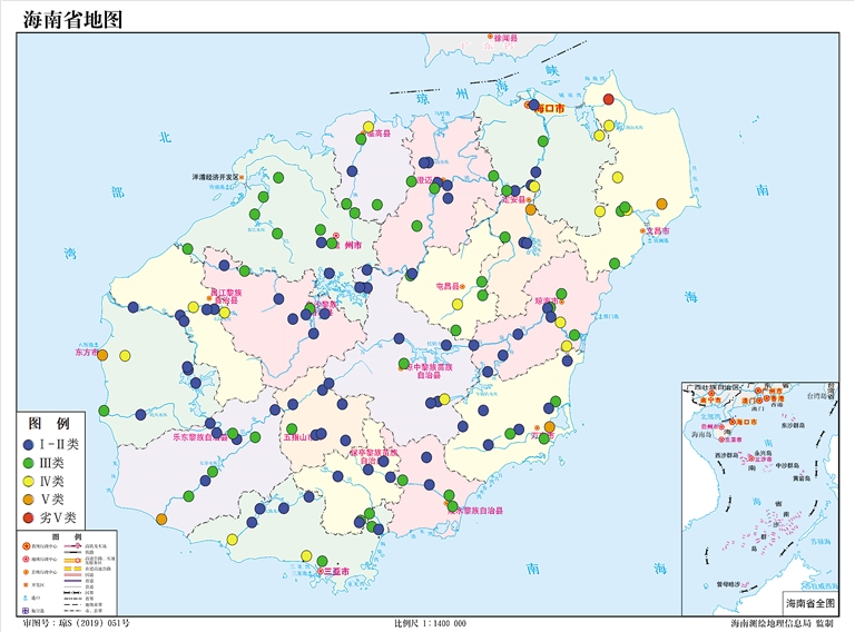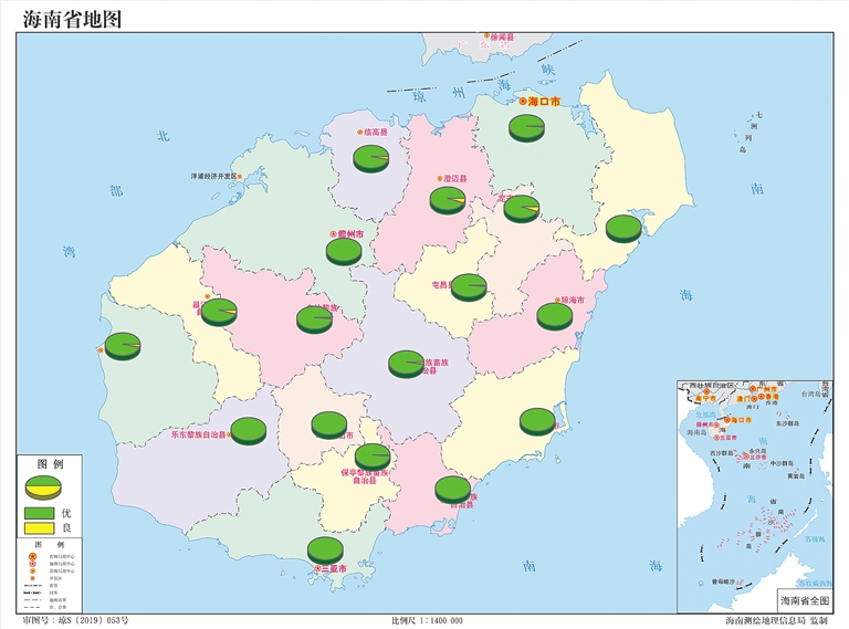 全省环境空气质量总体优良,优良天数比例为100%,其中优占98.4%、良占1.6%,无轻度及以上污染天。18个市县(不含三沙市)优良天数比例均为100%。与去年同期相比,全省优良天数比例上升3.9个百分点,其中优级天数比例上升11.8个百分点,良级天数比例下降7.9个百分点,轻度污染天数比例下降3.9个百分点。