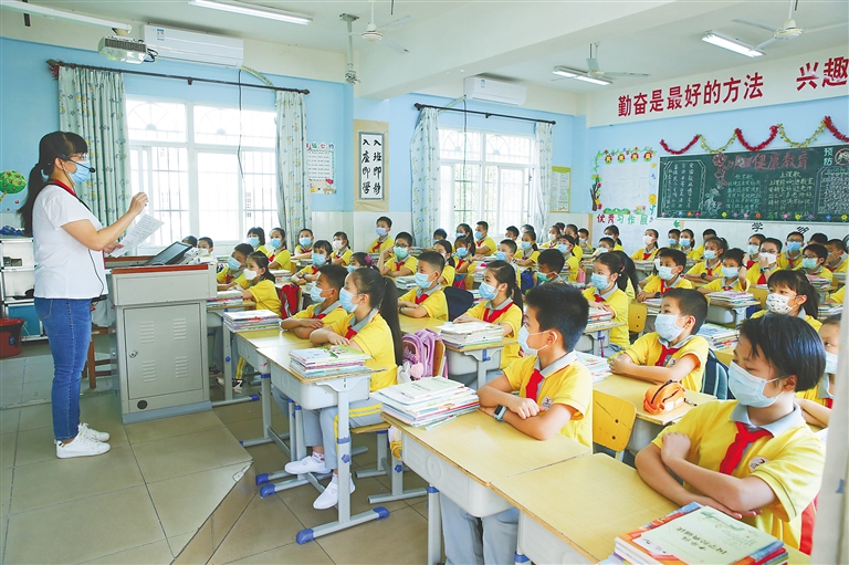 今年4月下旬,海口市琼山区第五小学复课首日场景。