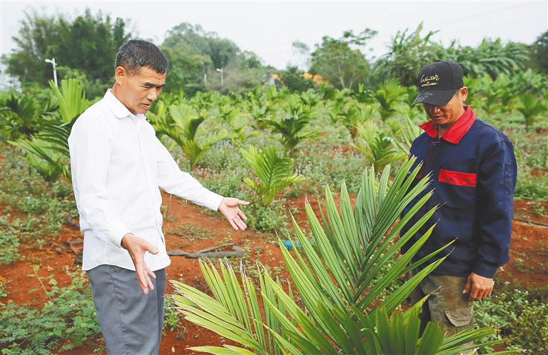 “一棵槟榔树一年的收益大约是600元,我种了15亩槟榔,今年确实赚了不少。”冯善祥笑道。冯善祥种植香蕉起家,如今“多条腿走路”发展种植产业。其他村民向他请教种植技术,他总是耐心教授。