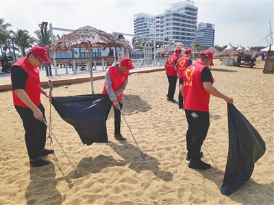 11月26日下午,在东方市各个街道村居,一群群身穿义工服的志愿者正在打扫卫生、清理垃圾,干得热火朝天。这样的场景,每周四下午都会出现在东方各条大街小巷。