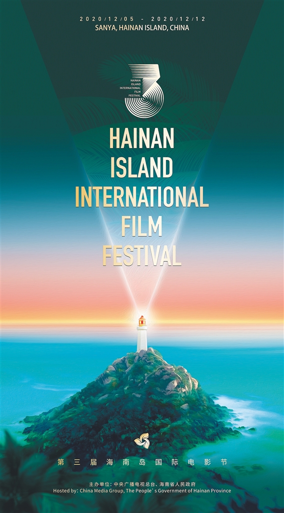 将海南岛最南端的“三亚锦母角灯塔”形象进行艺术化呈现。画面描绘了黎明时刻,曙光由海天之线向四周蔓延,赤橙的朝霞象征黎明将至的希望。灯塔的光束始终如一地投向远方,照亮辽阔的海域,为一艘又一艘的船只引航。据悉,这一设计正寓意着海南岛国际电影节的不懈追求——成为一座照亮海面的灯塔,让光影世界中种种未被发掘的“可能”在银幕呈现发光。