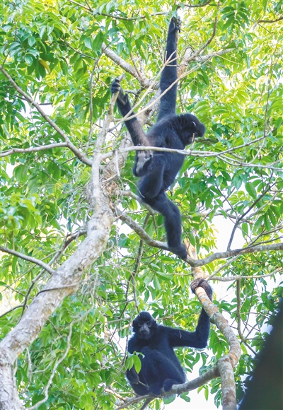 “要想帮助海南长臂猿更快地形成有效的生殖单元,栖息地的修复与保护非常重要。”海南国家公园研究院“海南长臂猿保护研究”项目“海南长臂猿繁殖生物学研究”课题负责人周江期待着,随着海南热带雨林国家公园体制试点工作的不断推进,能有越来越多的潜在适宜栖息地被转化为现实栖息地,为海南长臂猿连接起更广阔的生存空间。