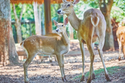 而在海南坡鹿的原生地——白沙邦溪,人们通过利用溪流、河沟等水资源,种植成片的牧草,模拟出相似度极高的野外环境,让200多头海南坡鹿在此惬意生息。“呦呦鹿鸣,食野之苹”,美丽的海南俨然成为人与自然和谐相处的乐园。