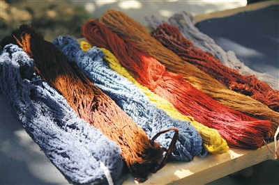手工染线工艺步骤十分繁琐,神奇之处在于单靠植物染料便可染出七八种颜色,难的是需要找不同的染料,然而这都是羊玉兰乐此不疲的事。她像神农尝百草一样尝试使用了多种树皮,“好多人笑我傻,一直找各种树皮染线,又耗时又不赚钱。”