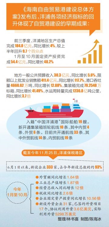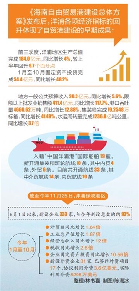 自《海南自由贸易港建设总体方案》发布以来,洋浦全区上下发扬“快准实好”的工作作风,不断优化营商环境,推动自贸港政策加快实施,在承接自贸港政策落地、保税港区建设、产业布局、人才引进和产城融合等五大方面交出了亮眼的“成绩单”。