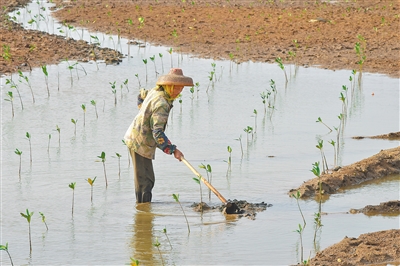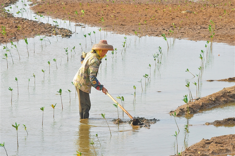 今年,海南新盈红树林国家湿地公园里已经新种起700多亩红树林,这个数字还在持续增加。