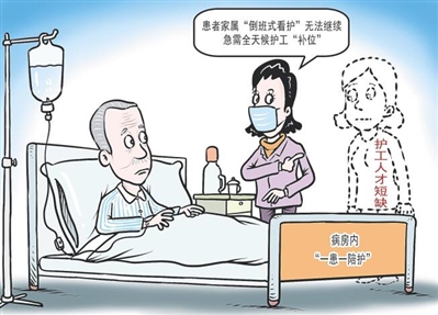 近日,68岁的长春市民陈宏在遛弯时不慎滑倒,造成盆骨骨折,住院接受手术治疗。他的儿子在外地工作,亲戚也大都繁忙,“一患一陪护”限制了他们的探视和轮流看护,家人很难做到全天24小时与患者“绑”在一起。在病友推荐下,陈宏聘了一名全天候护工,每天200元,负责打饭、洗漱等工作。在其照顾下,陈宏的伤情和心情都日渐平稳。