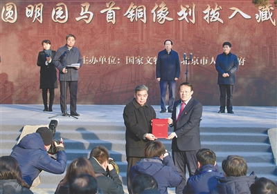 新华社北京12月1日电 (记者施雨岑 罗鑫)160年前,圆明园惨遭焚掠,自此下落不明的马首铜像12月1日回归故园。国家文物局当天正式将圆明园马首铜像划拨北京市海淀区圆明园管理处收藏,宣告这匹“骏马”成为第一件回归圆明园的流失海外重要文物。