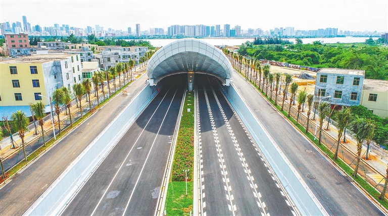 ②2020年8月建成通车的海口文明东越江通道。 本报记者 张茂 摄