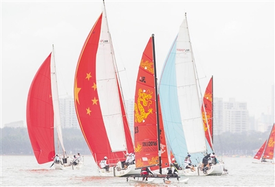 ⑦海口积极推进“旅游+体育”发展。图为环海南岛帆船赛海口站场景。本报记者 宋国强 摄