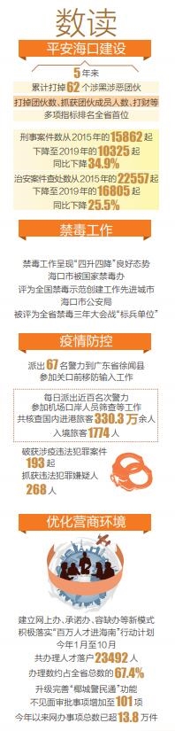 在优化免签外国人管理服务方面,海口市公安局围绕“入岛通关快、在岛服务好、离岛防得严”要求,制定《海口市公安局免签外国人动态管控工作方案》,与海口美兰边检站、机场、港航、铁路公安等职能部门在机场和“三港一站”建立免签入境外国人离岛管控工作机制,完善离岛防控快速反应协作机制。