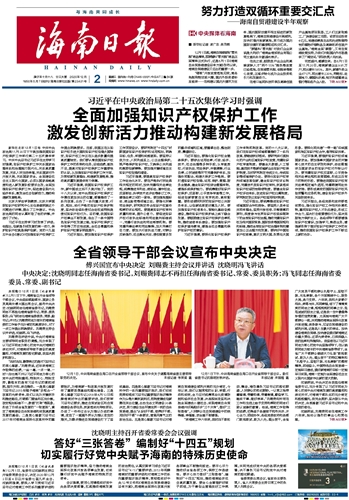 答好“三张答卷”编制好“十四五”规划 切实履行好党中央赋予海南的特殊历史使命
