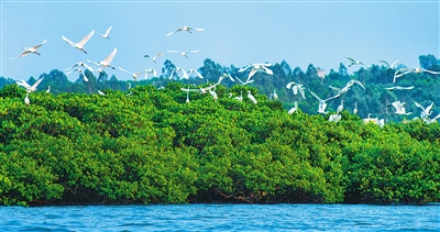 “通过无人机、装设高空摄像头,我们可以对红树林保护区域进行全天候、全方位监控。”看着逐渐变好的红树林和不断加强的巡护举措,王应泉对保护好家乡这片“海上森林”多了不少底气。
