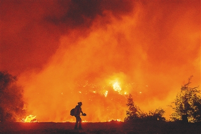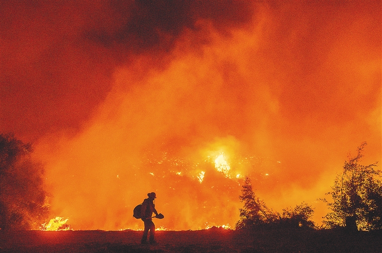 近几日,美国加利福尼亚州再现山火火情。今年加州山火比往年更加肆虐,1月至10月累计过火面积已经超过1.6万平方公里,造成至少31人死亡,数以千计的建筑物焚毁。图为12月3日,在美国加利福尼亚州西尔维拉多,消防员进行灭火作业。 新华社/美联