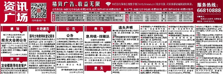 ●蔡婷女(于2020年12月1日)遗失居民身份证,号码:460023197311151028,特此声明。