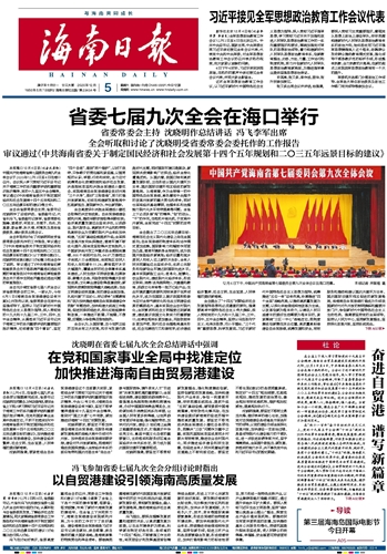 审议通过《中共海南省委关于制定国民经济和社会发展第十四个五年规划和二〇三五年远景目标的建议》