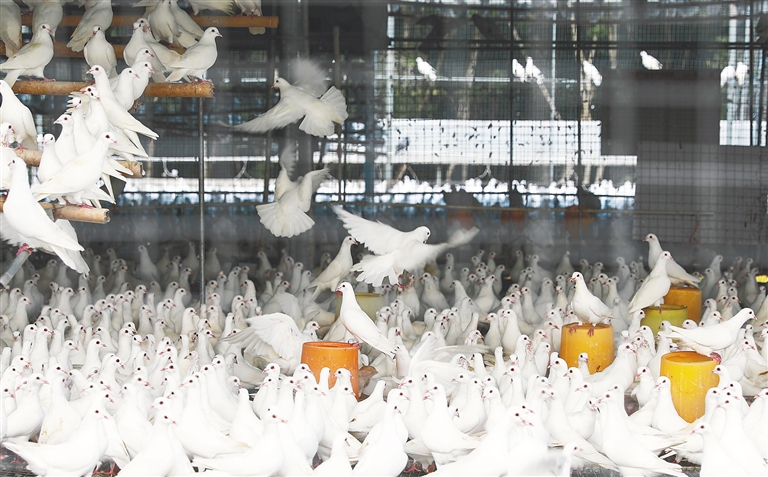 位于白沙黎族自治县牙叉镇莫妈村的新海府生态鸽业养殖基地养殖了3万对种鸽,通过出售肉鸽和鸽粪盈利。该基地带动多名建档立卡贫困人口就业,促进村民增收。