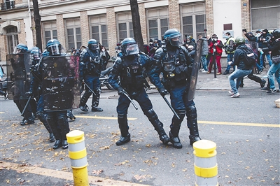 图为警察在法国巴黎游行示威活动现场警戒。 新华社发