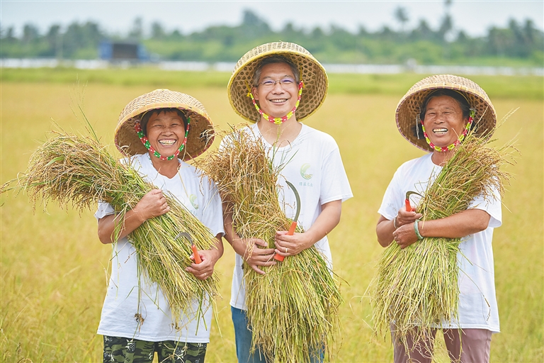 他们四处寻找、收集这种野生稻的种子,从3亩试验田开始,慢慢探索紫贝赤稻的最佳生长环境,同时在当地党委、政府的支持下,启动了万亩盐碱地的土壤改良工程,注册成立了海南璟益农业开发有限公司。