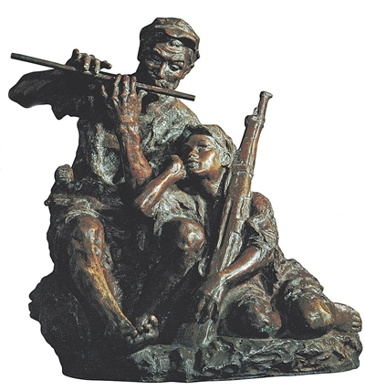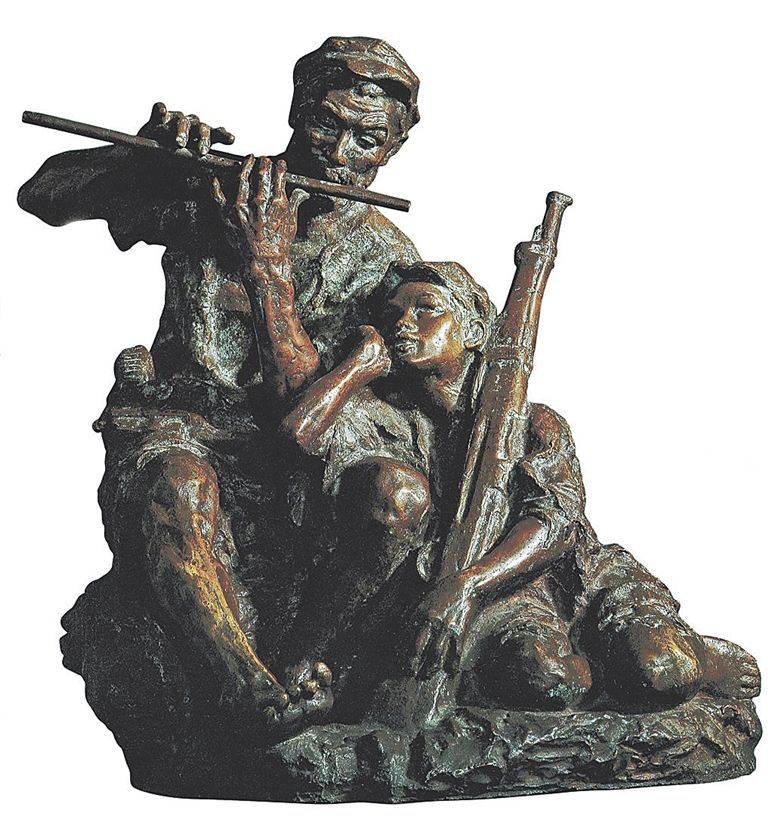 老战士吹笛,小战士倾听,雕塑《艰苦岁月》的经典造型,曾收录在语文课本和各类美术欣赏教材中,是几代人的记忆。在新中国美术史上,在表现革命历史题材方面,《艰苦岁月》是一件十分重要的作品。