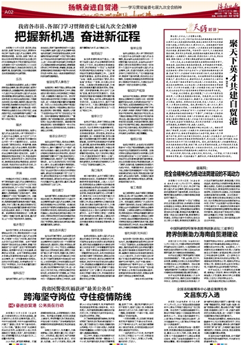 | 第002版:扬帆奋进自贸港——学习贯彻省委七届九次全会精神 |