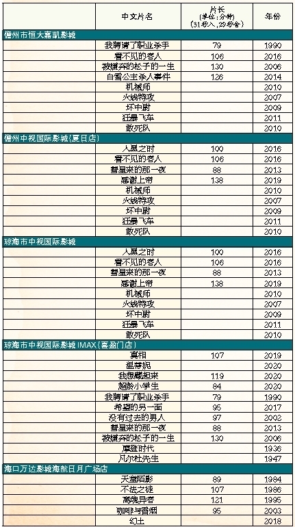 第三届海南岛国际电影节全岛展映影院和片单出炉