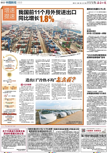 | 我国前11个月外贸进出口同比增长1.8% | |