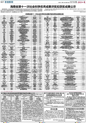 | 海南省第十一次社会科学优秀成果评奖拟获奖成果公示 | |