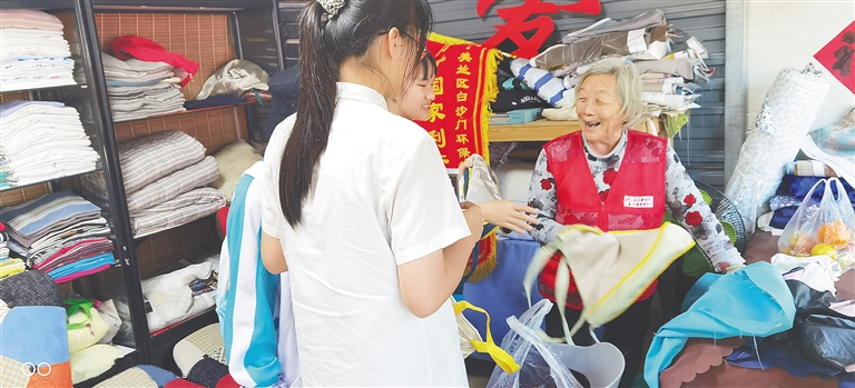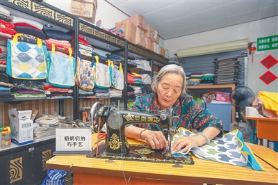 “这些布袋我们也很喜欢,但是看蒋妈妈做得辛苦,大家都舍不得管她要,所以都是自带布袋。只要环保,蒋妈妈就高兴。”一旁的志愿者刘玉英说。