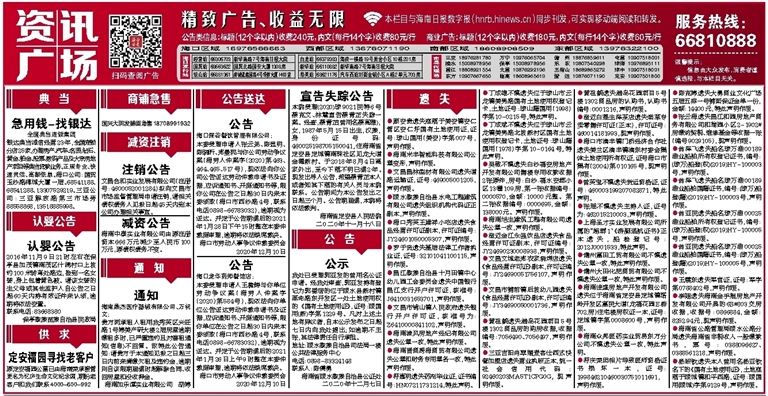 ●曾英宝不慎遗失货运资格证,证号:460003199207082871,特此声明。